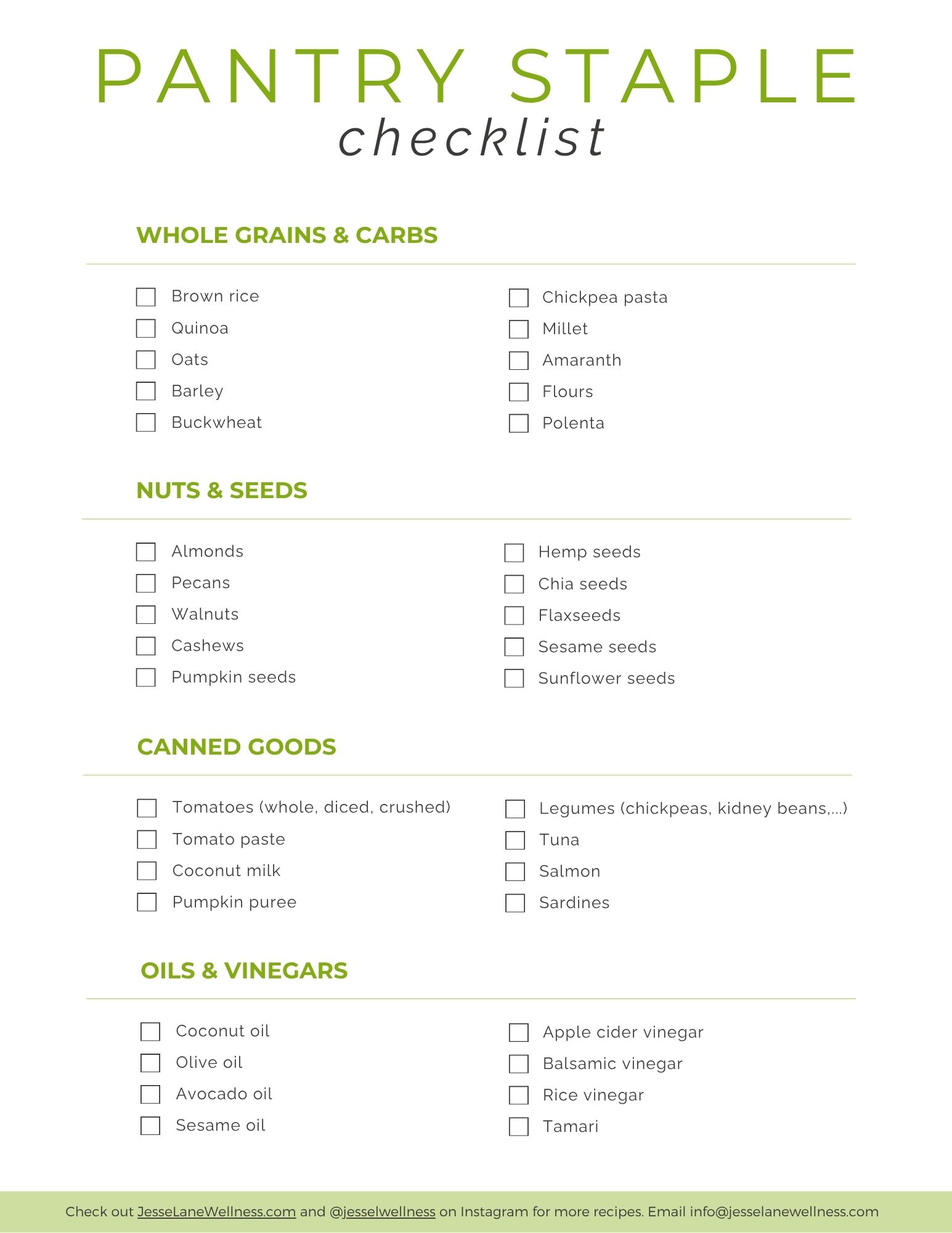 FREE CHECKLIST Healthy Pantry Checklist Download the free Healthy Pantry Checklist and always know what to stock. Save time, eat healthier, and make quick, budget-friendly meals with ease. * indicates required First Name Email Address *