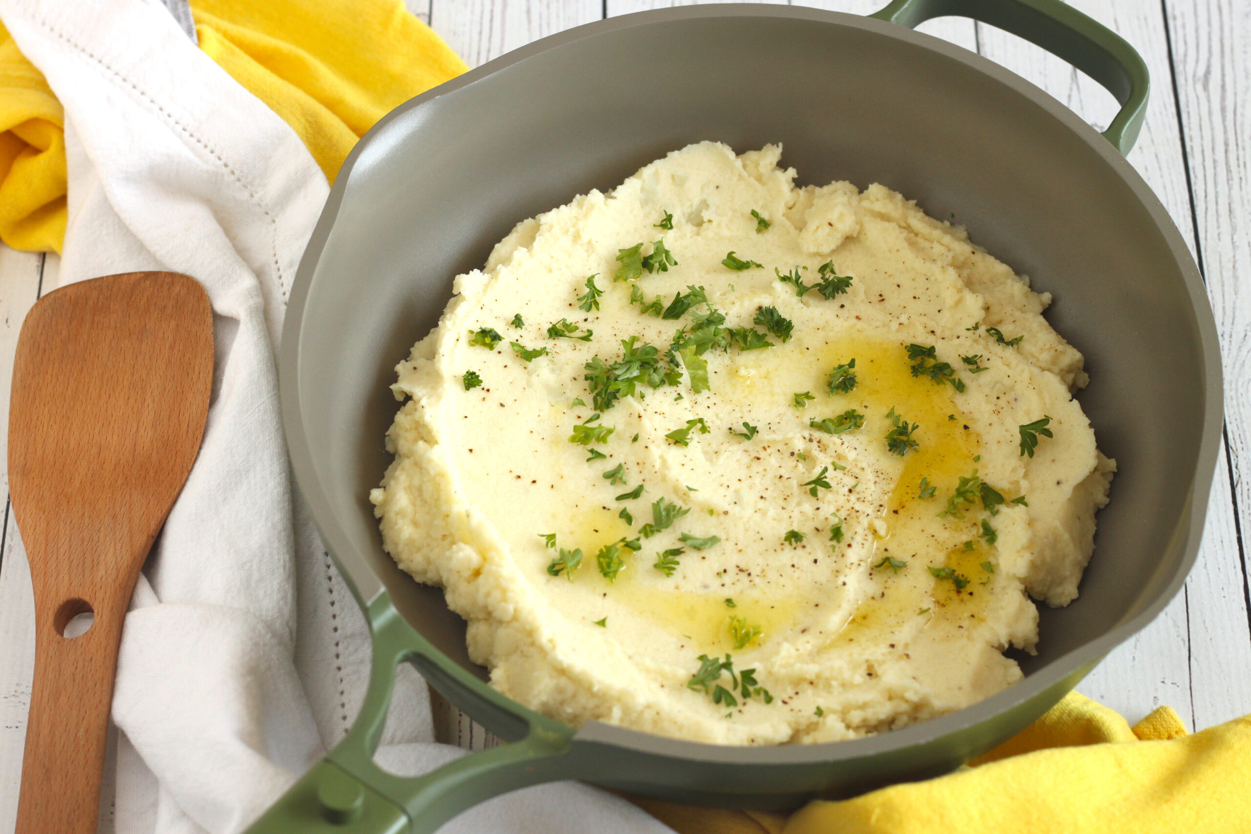Fewer calories, more fibre to keep you full and support digestion, and a significant boost of vitamin C. I promise, even the biggest mashed potato purists at your table won’t miss the original. It is perfect for your holiday table.